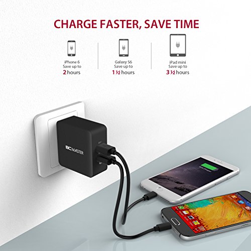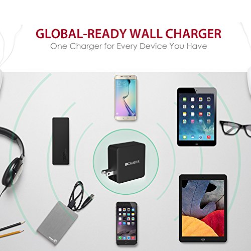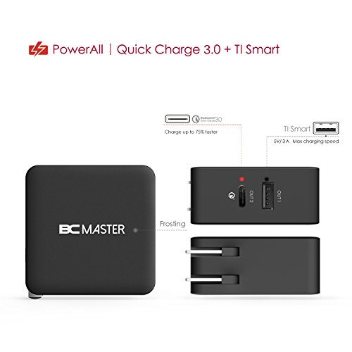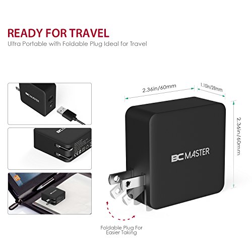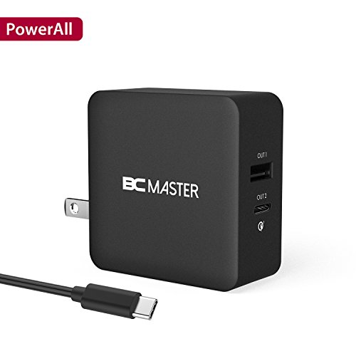 Wall Charger,BC Master 2 Port Foldable Quick Charge 3.0 34.5W with USB C to C Cable for Samsung,Iphone,LG G5,HTC 10,Samsung Galaxy S8, S8 Plus,New Macbook,Google Chromebook and More(Black)