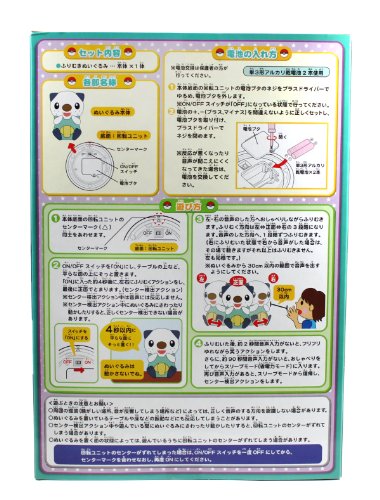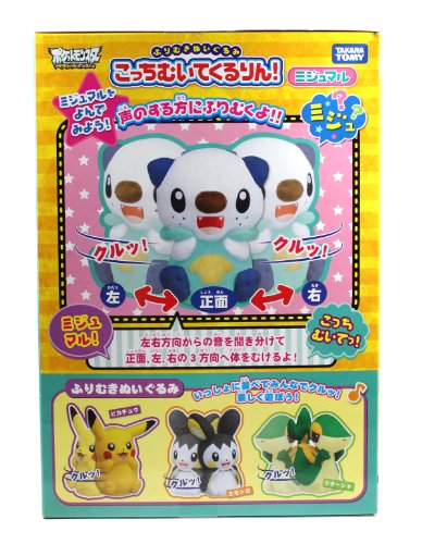 -. Binding : Toy -. Brand : Takara Tomy -. EAN : 4904810441823 -. Feature : Imported from Japan / Cute and collectible / Perfect as a gift for all Pokemon fans / Will turn toward the direction of your voice (within 1' of distance) / Watch it giggle and shake with laughter -. Label : Japan VideoGames -. Manufacturer : Japan VideoGames -. Model : PL-441823 -. PackageQuantity : 1 -. ProductGroup : Toy -. ProductTypeName : TOYS_AND_GAMES -. Publisher : Japan VideoGames -. Studio : Japan VideoGames -. Title : Pokemon Best Wishes Turning Talking Plush Takaratomy - Mijumaru / Oshawott -. Warranty : No Warranty
