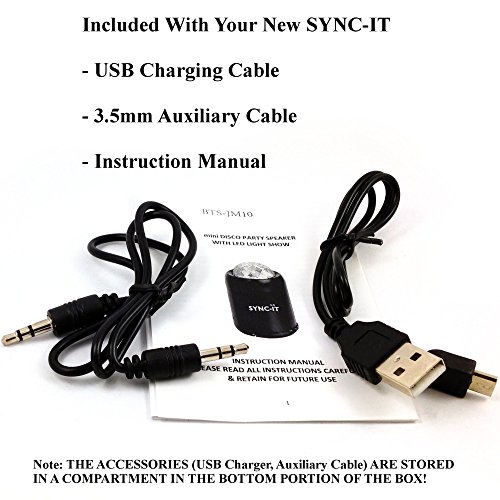 -. Binding : Electronics -. Brand : Your Spirit Space -. Color : Multi -. EAN : 0659683153635 -. Feature : ★ WIRELESS BLUETOOTH CONNECTIVITY - Quick and simple connect to iPad, iPod Touch, Android, Windows Phone, Blackberry, smartphones, tablets, computers and more! / ★ CRISP, CLEAR SOUND - Sounds great with bright flashing multi-colored LED light show for an instant disco dance party anywhere you go!***Can be used with or without the light show***. / ★ FULL BLUETOOTH FUNCTIONALITY - Answer your smartphone, change tracks, skip forward and backward, adjust volume, pause music! / ★ RECHARGEABLE BUILT-IN BATTERY - Easily recharge the long lasting lithium ion battery with the included micro USB recharging cable! Auxiliary jack allows you to listen to music and enjoy the light show while not bothering others! / ★ 100% CUSTOMER SATISFACTION GUARANTEE - All Your Spirit Space and Equipt4 LLC products are covered by our 100% customer satisfaction promise. If you are not fully satisfied than neither are we. We will replace or refund no questions asked!!! -. Label : Equipt4 LLC -. Manufacturer : Equipt4 LLC -. MediaType : MP3 -. PackageQuantity : 1 -. ProductGroup : Network Media Player -. ProductTypeName : PORTABLE_AUDIO -. Publisher : Equipt4 LLC -. Studio : Equipt4 LLC -. Title : SYNC-IT Bluetooth Portable Wireless Party Speaker With Light Show - Full USB Connectivity - Multi-Colored LED Light Show - Little Speaker Big Sound -. UPC : 659683153635