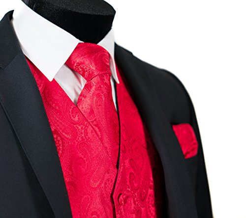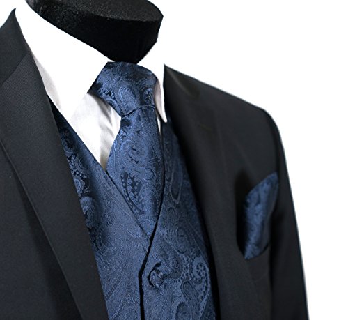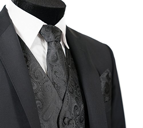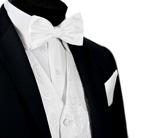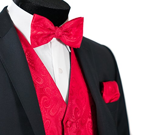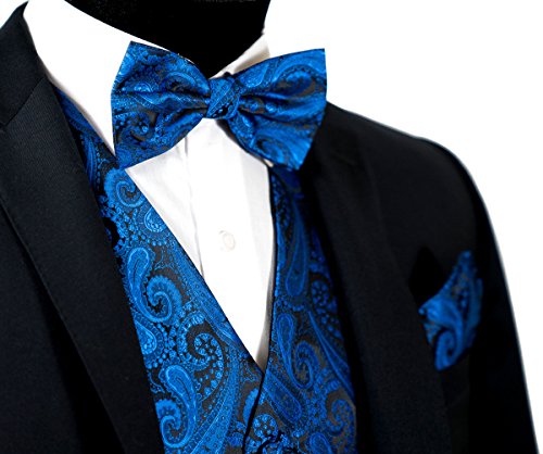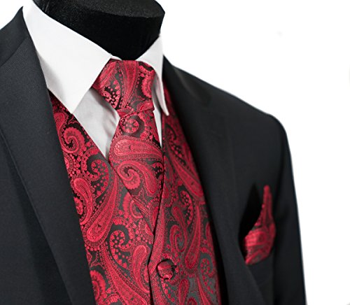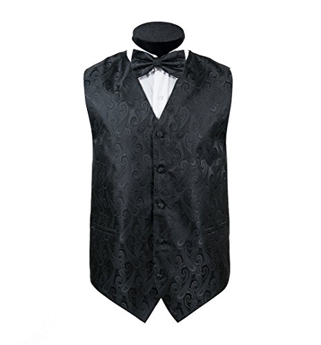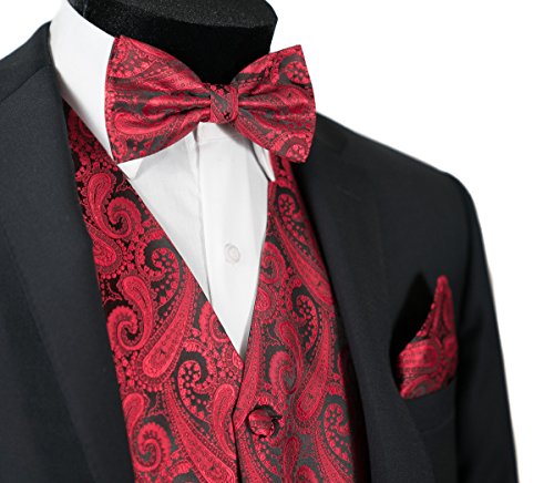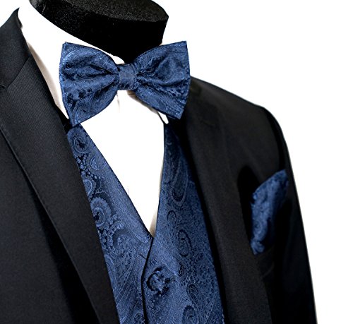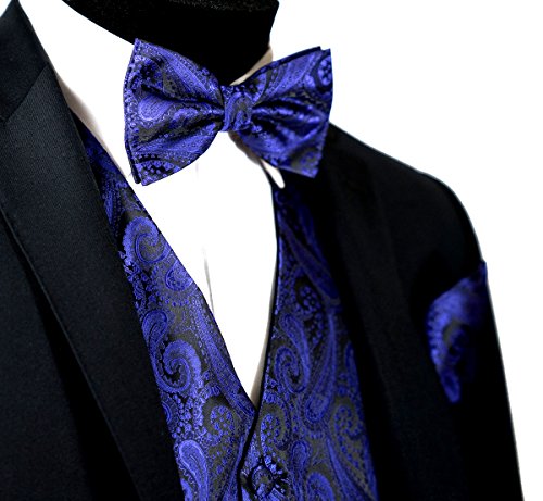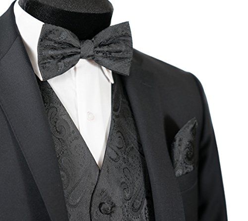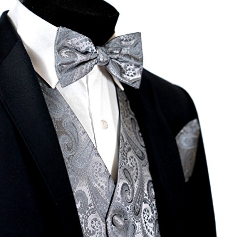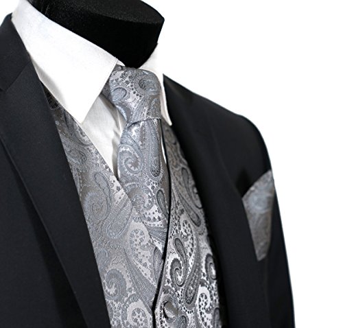 Binding : Apparel Product Description Combining a magnificent four piece formal paisley vest with a matching pre-tied adjustable bow tie and self tie neck tie, and pocket hankie, this set is a simple and stylish way to finish off your formal look. This set is priced at an very affordable price while providing you the customer with the highest quality of material. In addition to its timeless tuxedo vest, besom pockets, five button front, and full back, this vest features an adjuster in the back to take in or let out for a proper fit to the shape of your body. The vest accessories also have a fantastic satin finish which contributes a captivating burst of elegance to each included garment, boasting the perfect amount of shine to everything from a tuxedo, a suit or even a pair of jeans. With the endless possibilities you can choose to wear the pieces together or mix and match the pieces to create your own unique individual style-either way it will make any look all the more amazing. This chic vest set can be worn for any occasion, ranging from weddings and proms, to date nights or even a midnight stroll through the town. We provide 10 colors to choose from when you're feeling the look of bright golds or subdued grays, you're sure to find a perfect solid color for your formal Tuxedo Vest. It is also a perfect as formal wear for the groom and groomsman in a wedding party. We promise you a satisfaction of the highest degree! 0