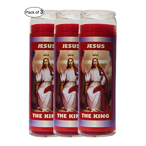 (Prayer ®)/Furniture Decor/Home Decor/DIRECT FROM USA/Glass Candle Red- Jesus The King (Pack of 3)