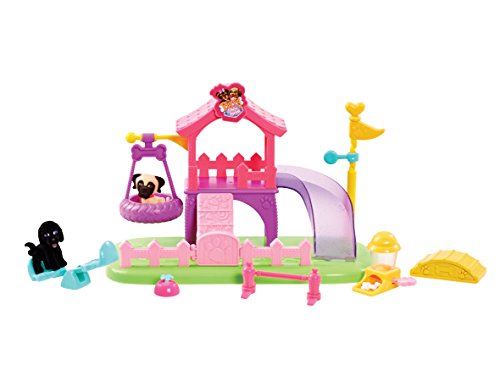 -. Feature : My Pocket Puppy Park includes two exclusive dogs: Titus the English Mastiff and Jackson the Labradoodle / Titus loves swinging in the tire swing, Flying Dic chase and leaping over the hydrant hurdle; Jackson runs up the ramp and slides his way down / The dogs play on the see-saw and enjoy a drink of water from the water bowl; Don't forget to reward your puppies with a treat from the dispenser!