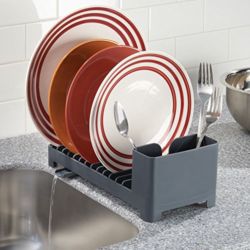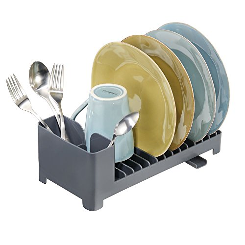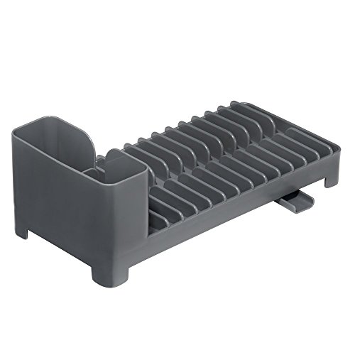 mDesign Compact Dish Drainer for Kitchen Countertop with Swivel Spout and Utensil Caddy – Slate
