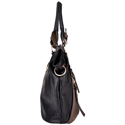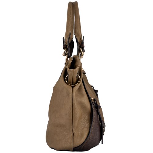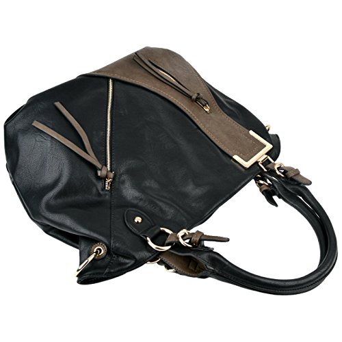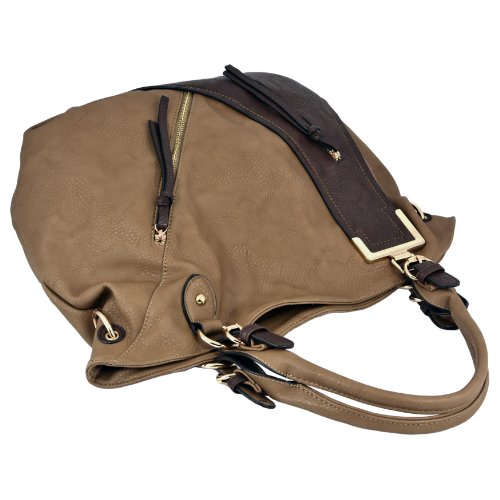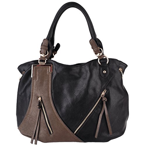 -. Binding : Apparel -. Brand : MG Collection -. Department : womens -. Feature : **Official MG Collection® product made by MyGift®** / A charming, stylish dual tone shopping hobo bag with gold-tone hardware. / Spacious zipper main compartment with 2 compartments separated by a zippered pouch style partition. Plus 2 pocket-style organizers, 1 zippered pouch, and 3 exterior zippered pockets. / Can be carried by the 2 sturdy top handles or the adjustable shoulder strap. / Made of premium manmade material. Approximate Dimensions: Exterior - 12.5" H X 17" W X 7" D; Interior (2 main compartments) - 10.5" H X 14.5" W X 3.5" D; Handle - 7.5" drop. Shoulder Strap - 24" drop -. Label : MG Collection -. Manufacturer : MG Collection -. Model : Gwen Chic Dual-tone Shopper Slouchy Hobo -. ProductGroup : Shoes -. ProductTypeName : ACCESSORY -. Publisher : MG Collection -. Studio : MG Collection -. Title : MG Collection Gwen Shopper Slouchy Hobo Shoulder Bag