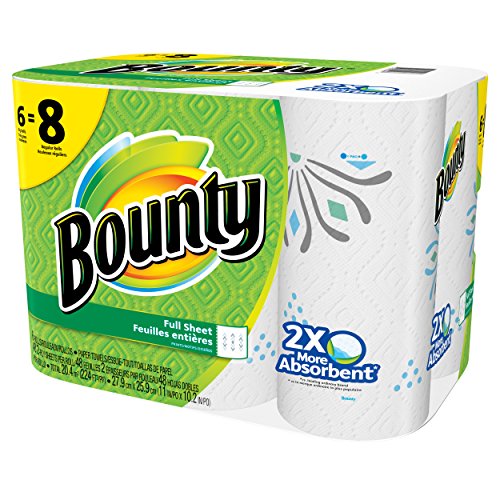 -. Feature : 2X more absorbent,* so the roll can last up to 50% longer* (*Vs. leading ordinary brand.) / The Quicker Picker Upper (Vs. leading ordinary brand.) / 6 Big Rolls =8 Regular Rolls / Full Sheet P.R.Int (48 sheets per roll) / If you love Bounty paper towels, try Bounty Quilted Napkins