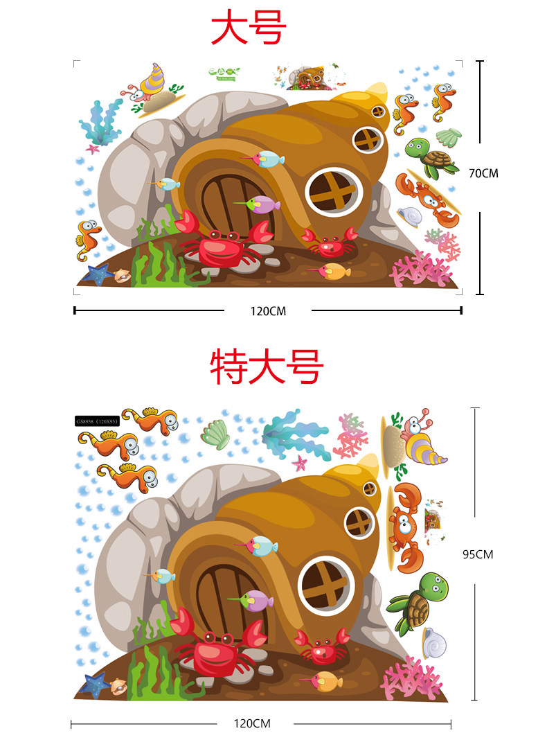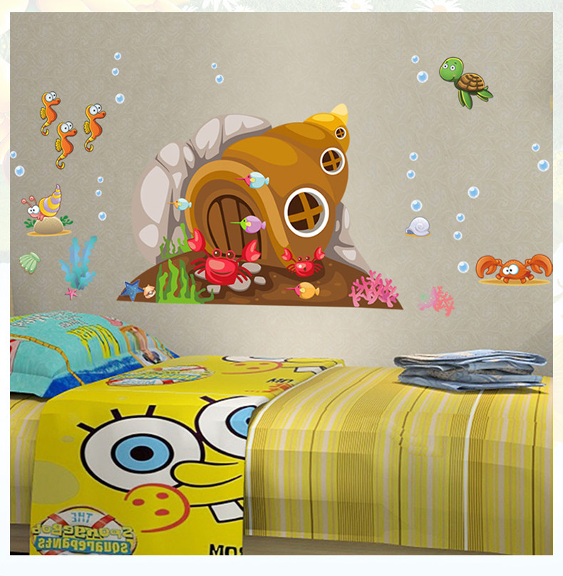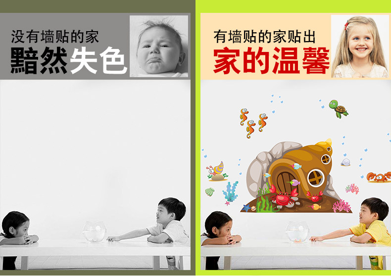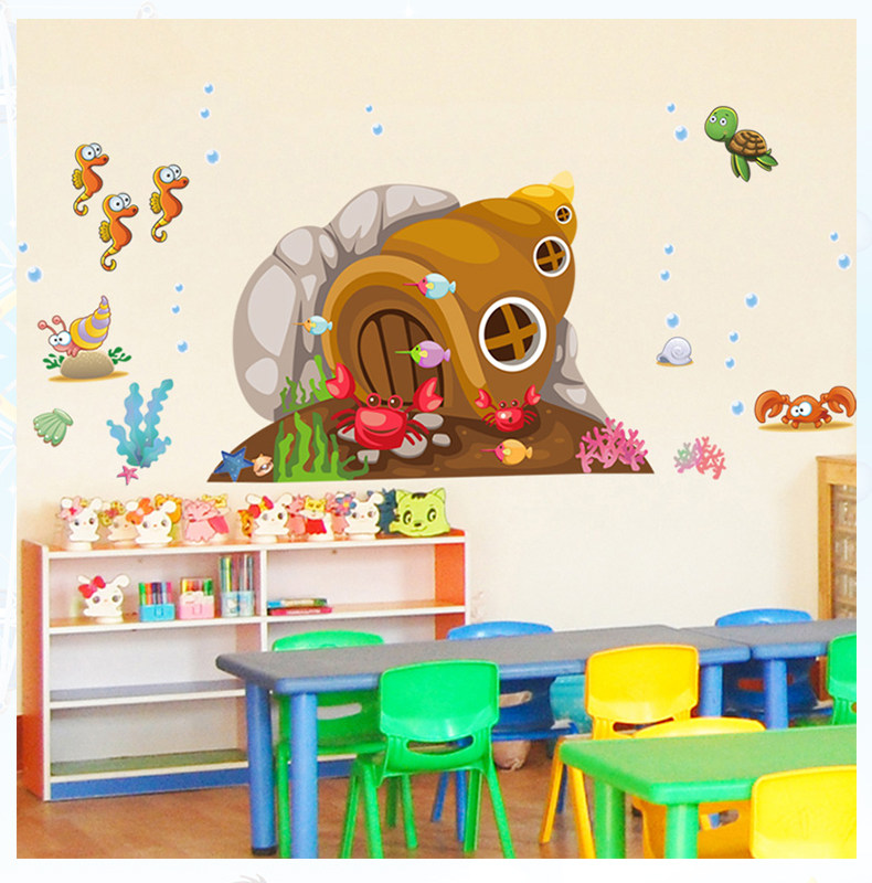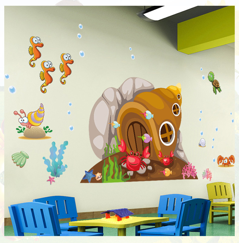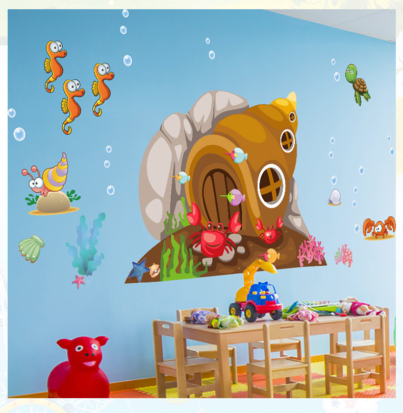 海底世界卡通墙贴 幼儿园学校教室布置贴画儿童房间创意装饰贴纸