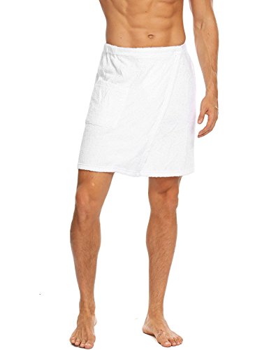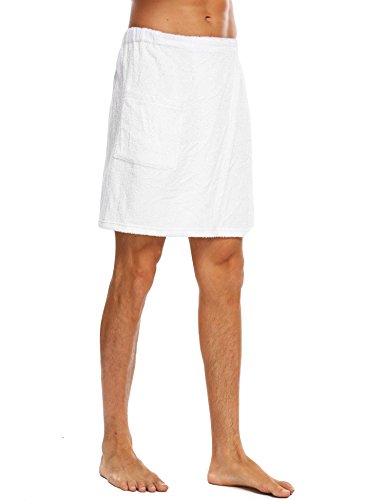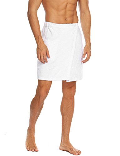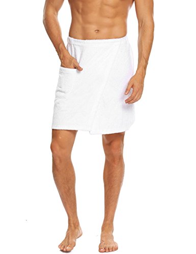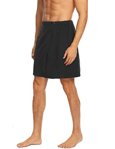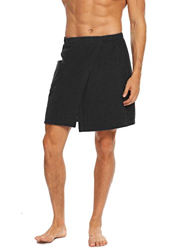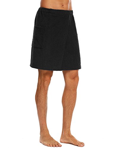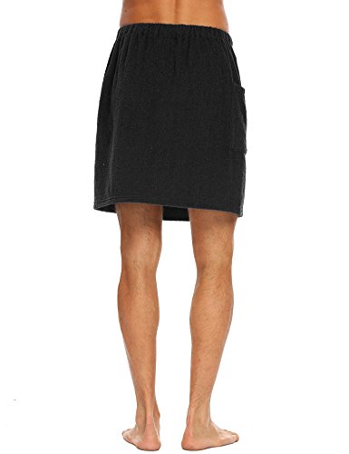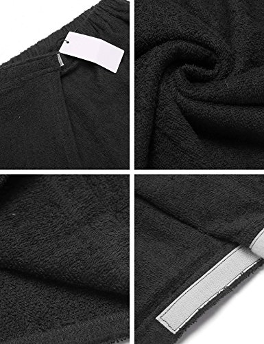 Langle Men's Sleepwear Wrap Shower Fastening Tape Terry Velour Bath Towel (Black, Large)