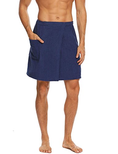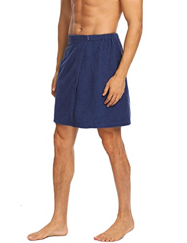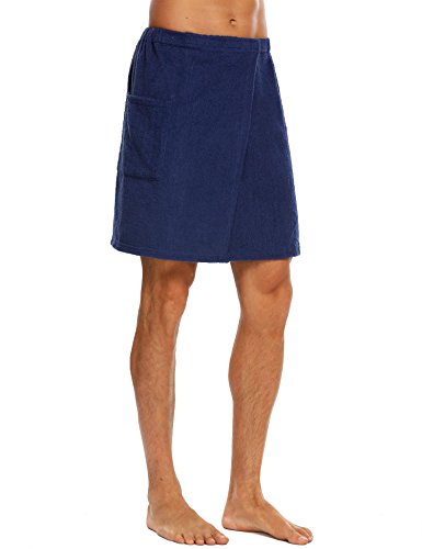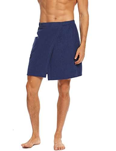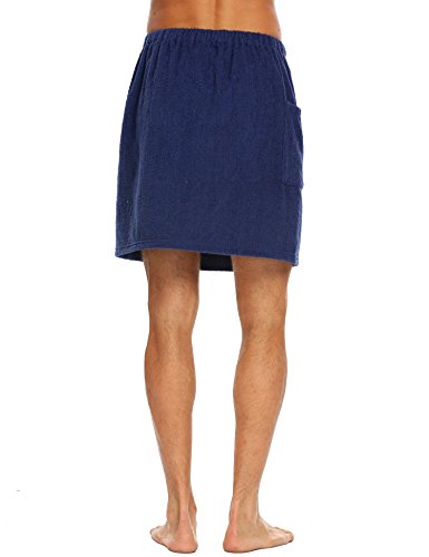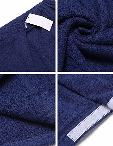 Langle Men's Short Sleepwear Bath Towel Bathrobe Loungewear (Navy Blue, Medium)