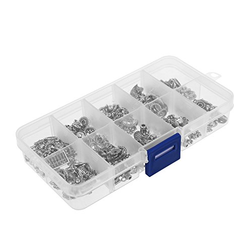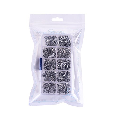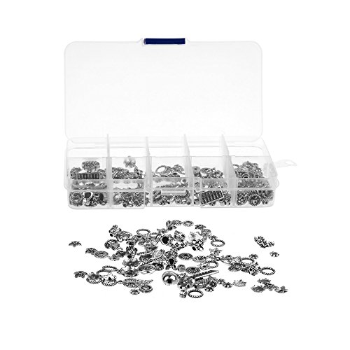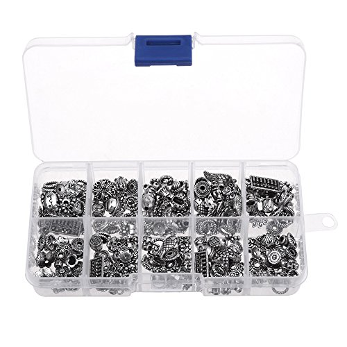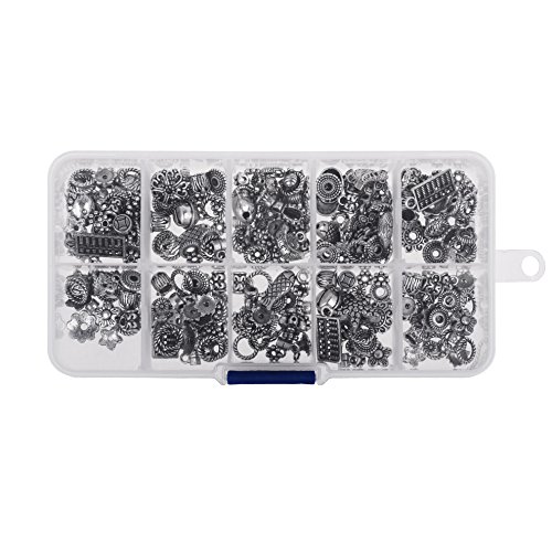 Kloud City 1 Box Tibetan Antique Silver Colored DIY Accessories Mixed Style Spacer Charm Beads for Jewelry Findings Making with Free Plastic Container