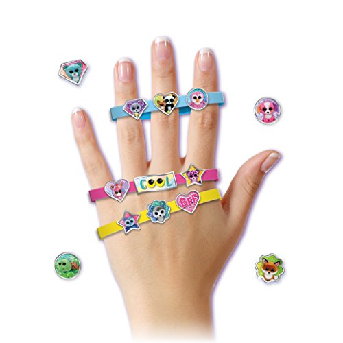 Mix and match Beanie Boo charms to customize 3 bracelets! includes 3 bracelet bands and 18 Beanie Boo and message charms. For ages 4+. styles and colors My vary. Manufactured and distributed by canal toys USA, Ltd. Made in China. Warning! small parts- CHOKING HAZARD. Not for children under 3 years. Licensed by Ty, Inc.Feature