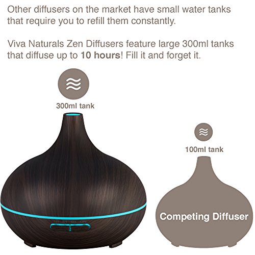 Viva Naturals 300 ml Ultrasonic Essential Oil Diffuser uses gentle vibrations to disperse cool, soothing essential oil mist throughout your home. Since it doesn't use heat, more of the healthy oil compounds are preserved.