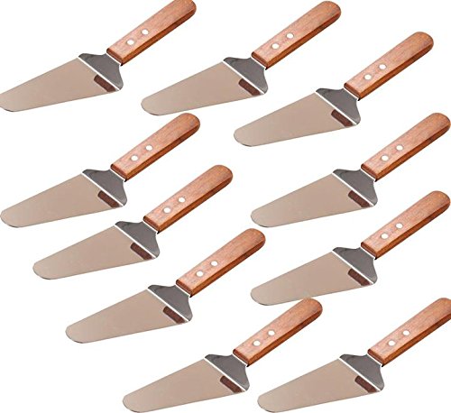 10x Pie Server Cake Holder Transfer Triangular Spade Spatula for Pizza Cake Baking Wood Wooden Handle Shovel Stainless Steel