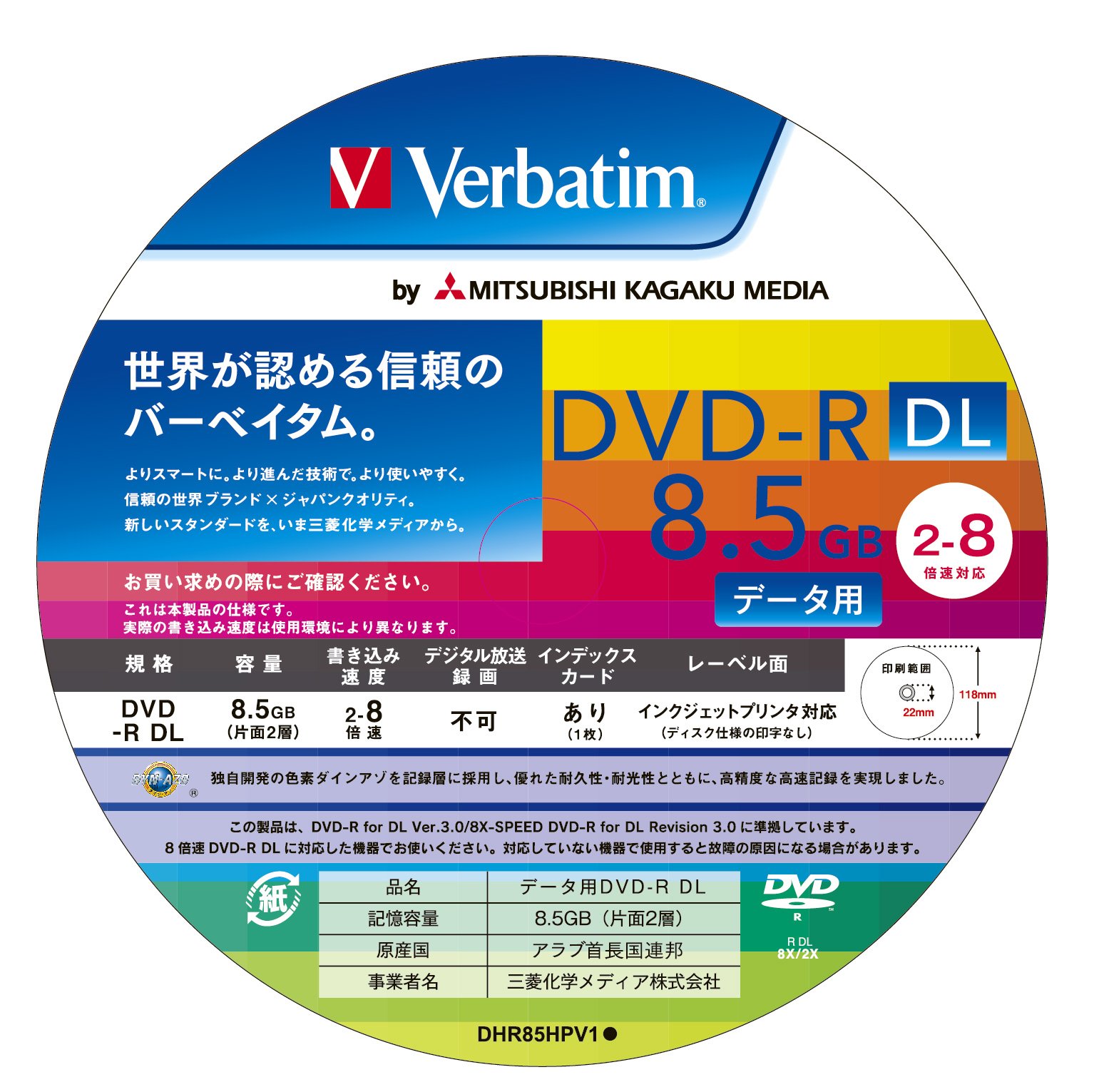 Mitsubishi Kagaku Media Verbatim DVD-R DL 8.5GB 1-time record for a 2-8 double-speed spindle case 25 pack of wide print-ready white label DHR85HP25V1