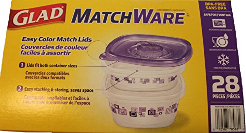 GladWare Glad matchware food storage containers variety pack including easy color match lids plus 4 dressing cups as a bonus, 28 total pieces