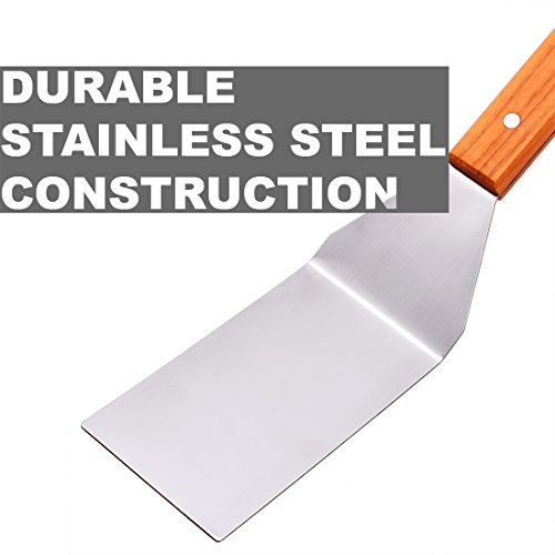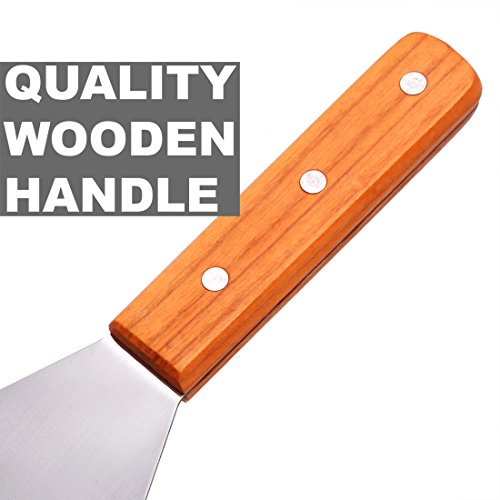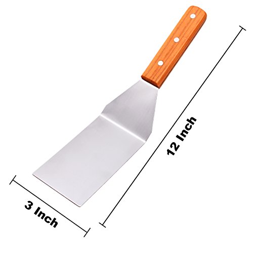 Studio : Hilltop Products Publisher : Hilltop Products Product Description High quality stainless steel Food Turner is designed for heavy duty kitchen works. Perfect for BBQ, grilling, flipping burgers and scraping the bottom of stainless steel pans. Corrosion and rust proof stainless steel. Even after scraping and flipping countless times, the turner will not rust easily. Coating finished wooden handle is secured with 3 steel rivets for added strength, secures the handle firmly. Dishwasher safe. Item Dimension: 12 x 3 Inches. 0
