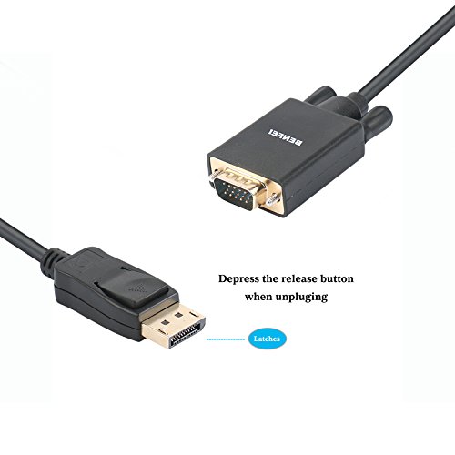 Convenient cable directly connects a DisplayPort (DP, DP++, DisplayPort++) equipped computer to a monitor or projector with VGA input