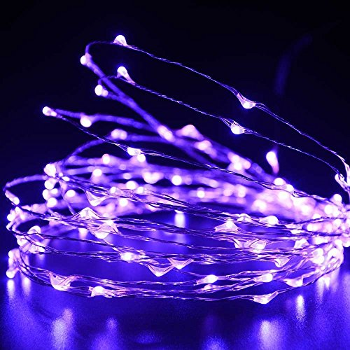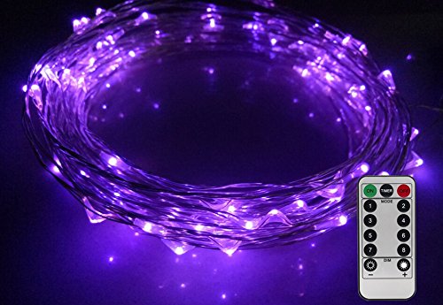 16.5Ft 50Leds Copper Color Decor String Light 8 Mode Battery Operated w / Remote Control (Purple)