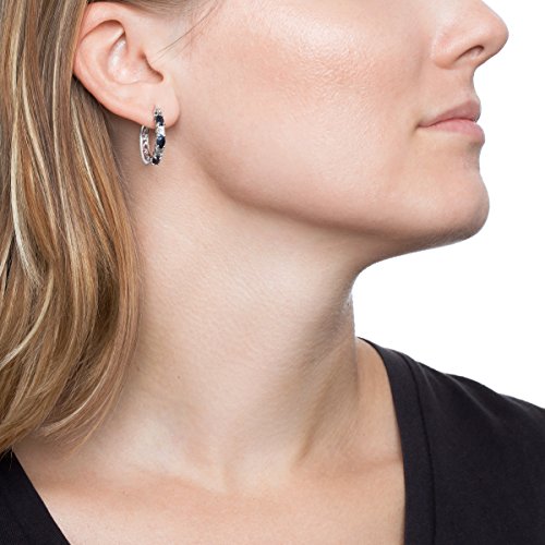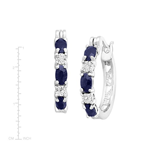 -. Title : 2 1/10 ct Natural Sapphire Hoop Earrings with Diamonds in Platinum over Brass, .875"
