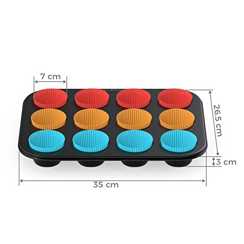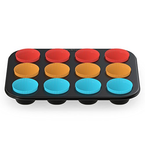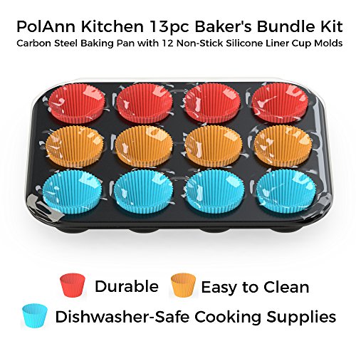 PolAnn Kitchen 13pc Baker's Bundle Kit – Carbon Steel Baking Pan with 12 Non-Stick Silicone Liner Cup Molds – Durable, Easy to Clean, Dishwasher-Safe Cooking Supplies