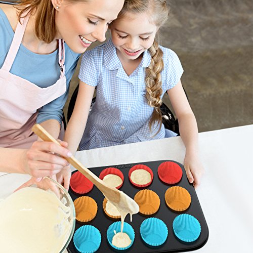 12 SILICONE LINERS: The all-in-one baking kit also includes 12 silicone muffin cups in a variety of fun colors, allowing you to make a whole dozen of muffins, cupcakes, oatmeal cups, appetizer cups & so much more.