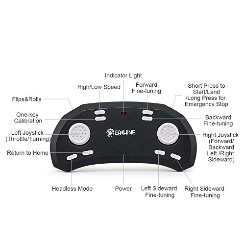 Function: Up/down, Forward/backward, Turn left/right, Sideward flight, LED Light, Headless Mode, One Key Automatic start/Return,H/L Mode
