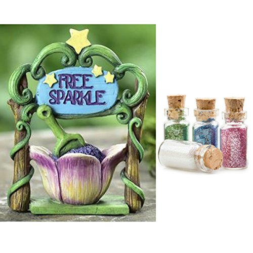 Fantastic set of miniature "Free Sparkle" figurine for fairy gardens PLUS 4 bottles of fairy dust!