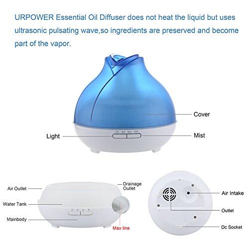 This URPOWER® Aroma Diffuser uses Ultrasonic waves to instantly vaporize water and essential oil in the tank, to produce a cool, dry fragrant mist. The diffusion of neutral oils offers safe and soothing ease to everyday health issues including stress, congestion, fatigue, memory recall, anxiety, and dry skin.