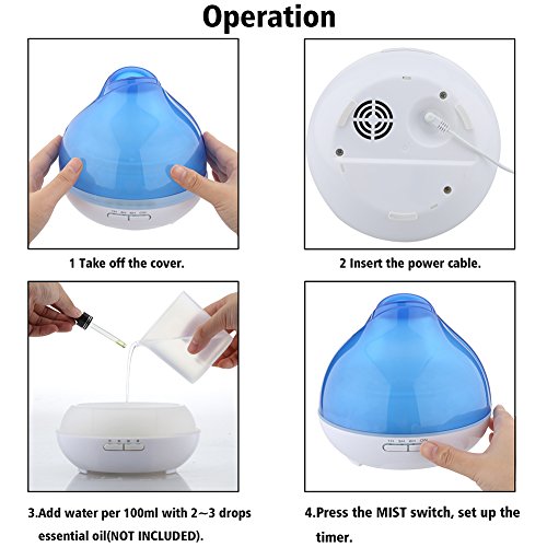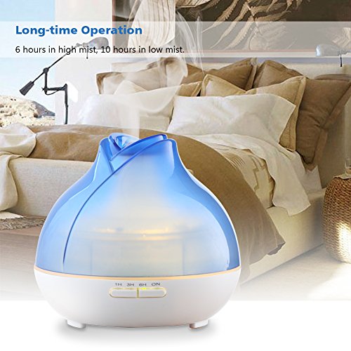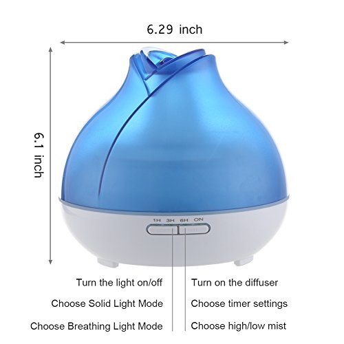 Large 300ml water capacity machine runs for up to 10 hours.Select up to 4 automated timer intervals (1H,3H,6H,ON).You can also press MIST to adjust the spray intensity(Strong or Weak). This oil diffuser is more intelligent and gives you more conveniences.Waterless auto shut off ensures safe, even if you forget it's on since it's so quiet.
