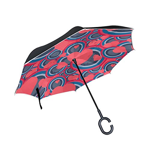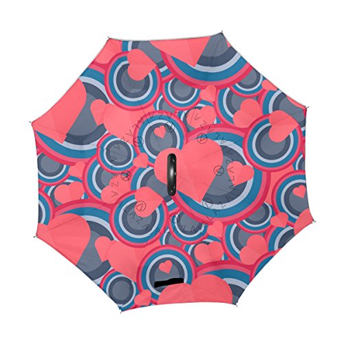 (AHOMY)/Accessories/Umbrellas/DIRECT FROM USA/AHOMY Valentine's Day Heart Geometric Figure Round Large Double Layer Inverted Umbrella Windpro...