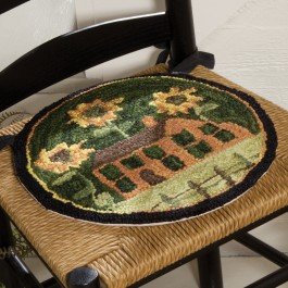 -. Title : Park Designs House and Sunflowers Hooked Chair Pad
