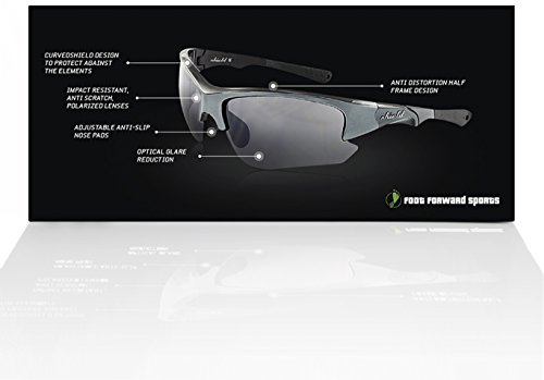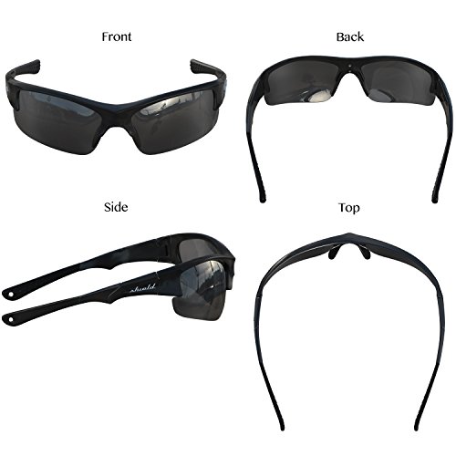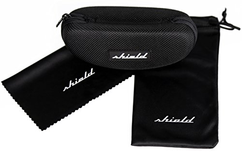 Shield polarized athletic sunglasses were made for you & your active lifestyle. The durable, yet comfortable sunglass design was inspired by pro athletes. After working with triathlete, ironman & marathon runner, long distance cycler, baseball player, skier, & rock climber, we found what serious sports men & women need from shades. First, Shields offer protection. Our lenses boast 99.99% UVA400 UV blocking to protect your eyes. Our UltraClear polarized lenses eliminate sun ray glare off reflective surfaces like water, mirror windows, & snow, greatly reducing eye fatigue for HD vision; a must for a watersport like fishing, or to surf, kayak, lifeguard, run & bike along water - even ski! On top of long wear comfort, our ergonomic CurvedShield lens design blocks peripheral light to further reduce sun glare, yet allow airflow to stay cool & prevent fog, and eliminates lens edge distortion; Perfect for tennis & softball! What people really love about Shield sport sunglasses is they're as stylish as they are functional. The sleek design lets you go from running the trail to lounging under the sun on the beach! Perfect fit? Our Anti-Slip, adjustable rubber nose pads & SureGrip temple covers with strap holder holes, keep your glasses secure even when sweating or resting your Shields atop your head. Now, we want you to be ready for anything the moment they arrive so we also include the Shield hard shell case with athletic zipper, soft microfiber drawstring pouch, & polishing - cleaning cloth. Shield dark polarized lenses are impact & scratch resistant as well as shatterproof & our frames are constructed with high-quality, flexible, polycarbonate material chosen specifically for long term use with minimal wear. All of this comes with the Shield Promise - Unhappy for any reason? We'll refund you within 60 days & replace your glasses if lenses or frames ever break. We stand behind our product! We're here to serve you!Feature