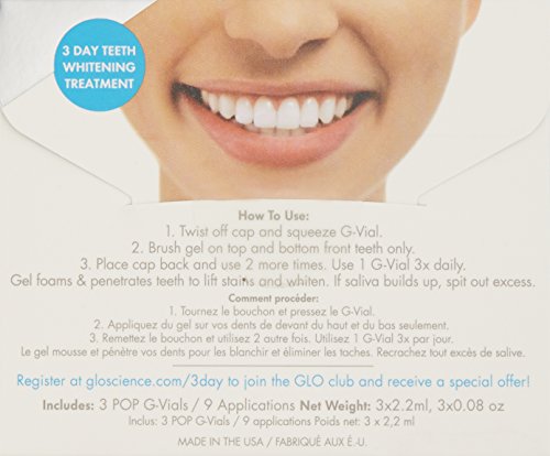 With GLO Vials, you can whiten in seconds, anywhere and any time – without strips, trays, or messy, runny gels. The precision brush tip allows you to target teeth and hard-to-reach areas while the air tight seal inside keeps the formulation fresh and active. Just brush on the mint-flavored gel and you’re GLOing – no need to rinse. Use the contents of 1 GLO Vial each day for 3 days. Your teeth get whiter with each use – all without any sensitivity! Safe for stain removal on crowns, bridges, and veneers. Clinically proven, patented, and award winning teeth whitening that's easy to use and pain free – now that’s something to smile about!