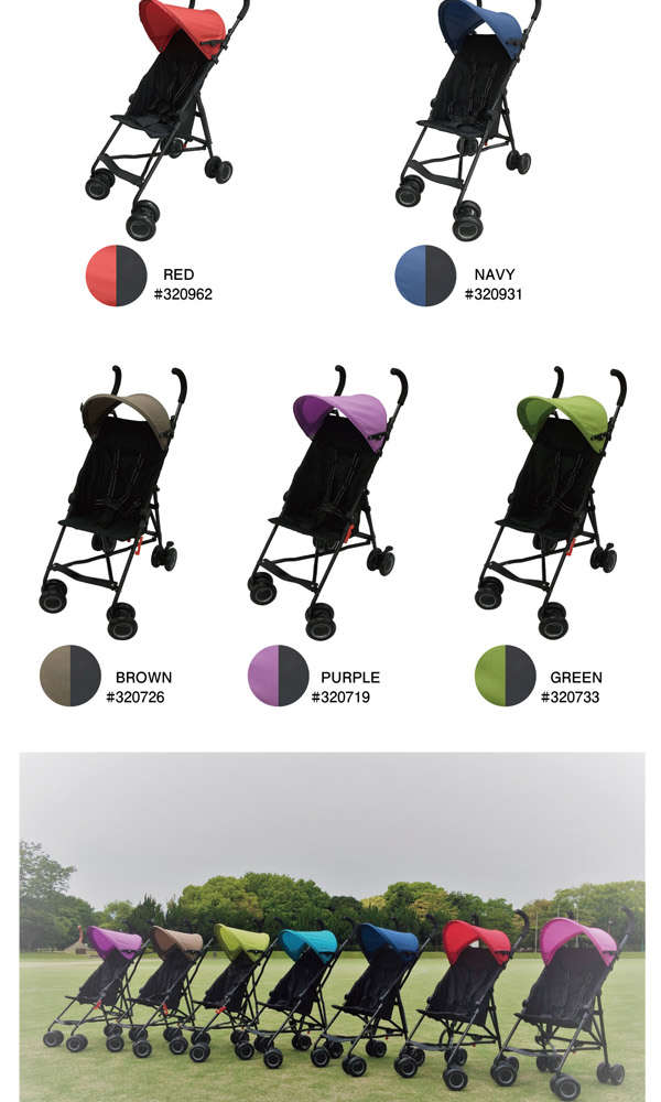 ●材質:フレーム-アルミ製、シート生地-ポリエステル、幌-ポリエステル・PP、タイヤ:EVA樹脂