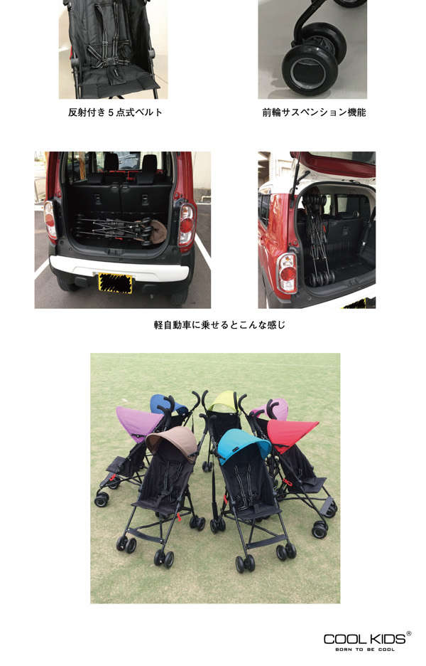 ●お子差の安全のため5点式シートベルトを採用し、暗がりでもわかる反射材を入れてます。