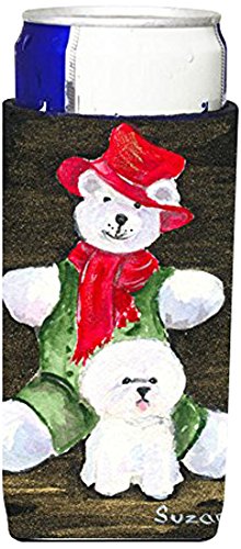 Bichon Frise with Teddy Bear Ultra Beverage Insulators for slim cans SS8948MUK