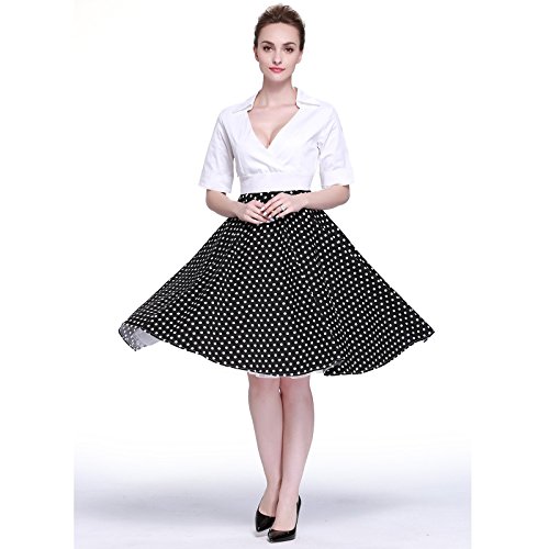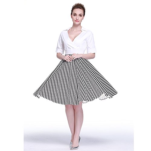 -. Feature : 97% cotton, 3% Spandex / Dry Clean or washed / Short Sleeve dress in fit,V neckline ,Knee-Length;Dots, stripes, checks; white Splice; / Concealed back zipper / The model wore the dress with 26 inch of Petticoat. Dresses in our shop are not include the Petticoat. You can shop the pannier on Amazon.