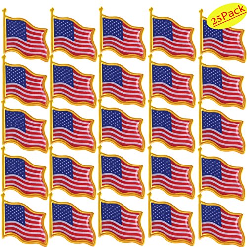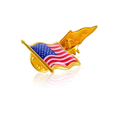Binding : Jewelry Product Description - This american flag pin is high quality. Tough epoxy varnish on die struck nickel plated brass. - Durable and long lasting pin die struck from jewelers metal, with hand filled bold enamel colors. - The USA flag design and pattern with comfortable texture will ensure its practicability and popularity among tie or hat decoration. - High quality lapel pins. The exquisite structure make it looks unique and distinctive. - Featuring an impressively detailed rendering of the Stars and Stripes, each pin is an ideal gift for any patriot. - Show your American pride and patriotism with our most popular patriotic lapel pin. - These pins would be excellent for patriotic events, election parties, campaign giveaways, and polling place volunteers. - The American flag pin is 3/4" wide, is gold plated, hand filled with enamel colors, and polished to a shine. Wearing a flag pin is a long standing tradition that shows your true patriotism. Each pin comes with a standard clutch back and is individually poly bagged. 0