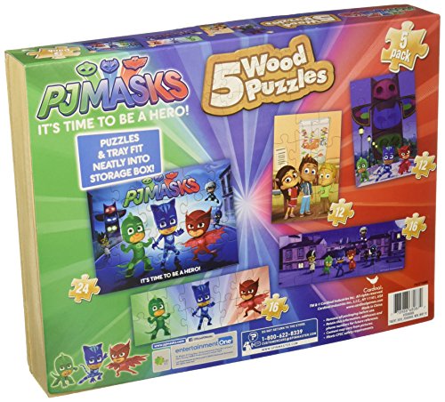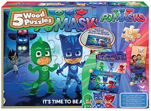 ReleaseDate : 2017-09-28 Studio : Cardinal Industries Publisher : Cardinal Industries Binding : Toy Product Description Bring the fun of PJ Masks to your little one with 5 PJ Masks wood puzzles. The durable pieces are the perfect size for little hands?kids will love putting together 5 puzzles of varying sizes. Each puzzle features fan favorites from the PJ Masks show including Catboy, Owlette, and Gekko. The wood box provides easy storage. 0
