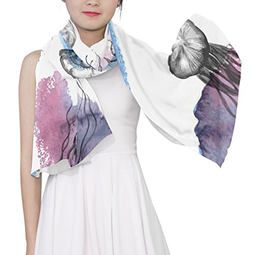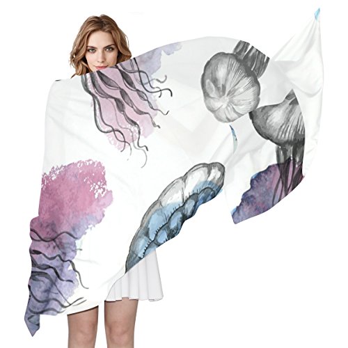 (ALAZA)/Accessories/Cold Weather Accessories/DIRECT FROM USA/Cooper girl Colorful Jellyfish Silk Scarf Shawl Wrap for Women Girls