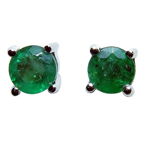 These 14K white gold round four-prong set earrings feature 3.5mm natural round Emeralds with a .40ct total weight. While some natural inclusions are inevitable at this price range, the emeralds have good color, and are generally good quality. These earrings are delivered with a gift box and a Certificate of Authenticity. For more than 40 years in business, we always make sure that our customers are satisfied with their purchase, and offer a 30-day money back guarantee.Feature