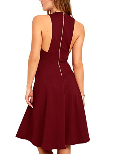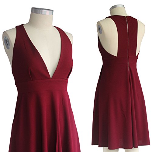 Kindly Remind: Our Sleeveless V Neck A-line Dress size are based on the size of the United States, Please check the size table carefully before purchasing. LouKeith Womens Deep V Neck Sleeveless Zipper Back Evening Party A-line Dress