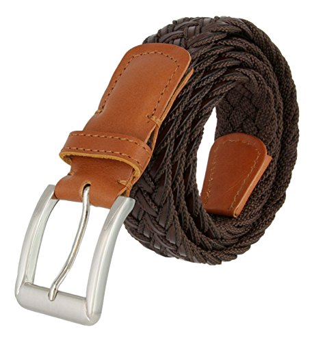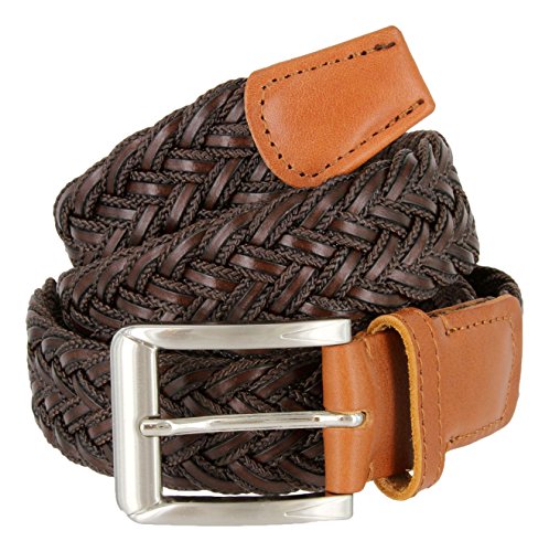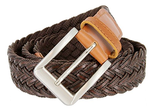 -. Binding : Apparel -. Brand : Belts.com -. Color : Brown -. Department : mens -. Feature : Genuine Leather / Polyerster and Genuine Leather Woven for a strong and Stylish Braid / Silver Metal Buckle Heavy stitched on / Genuine Leather Tabs enhancing the intricate design / Measure around where you wear the belt, with your pants on, and order that size. -. ProductGroup : Apparel -. ProductTypeName : ACCESSORY -. Title : Woven Braided Genuine Leather and Fabric Casual Dress Belt for Men Brown or Black