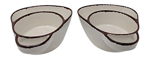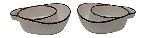 Gianna's Home Set of 2 Rustic Farmhouse Country Stoneware Distressed Soup and Side Chip and Dip Bowls With Handles (Ivory)