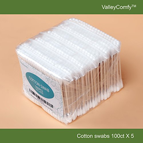 Valleycomfy Wooden Stick Cotton Swabs/Qtips(100CTx5) - Double Tipped Premium 100% Cotton, white, 2.95"