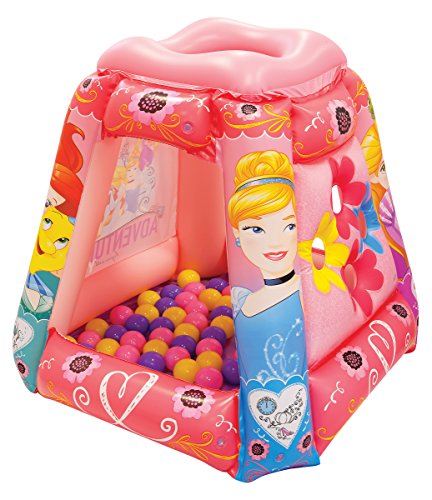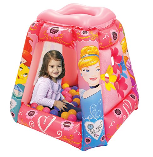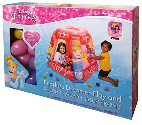 Your favorite Disney Princess is ready for her royal debut in this beautiful Fearless Dreamer Inflatable Playland. This fun activity playland features 20 soft flex balls, peek through windows, interactive side play panel, fun ball toss roof and large interior play area. With true to life graphics of your favorite Princess characters your little one will have a royal good time in her beautiful playland. Perfect for ages 2 and up!.Feature