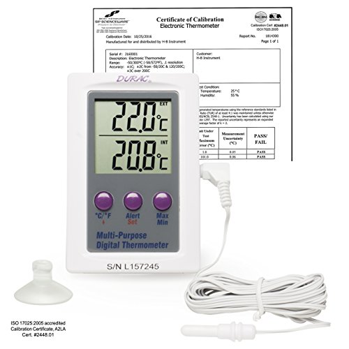 H-B DURAC Calibrated Dual Zone Electronic Thermometer with Waterproof Sensor; -50/70C (-58/158F) External, -20/70C (-4/158F) Internal (B60900-0300)
