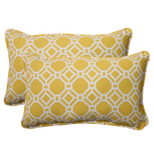 Pillow Perfect Indoor/Outdoor Rossmere Corded Rectangular Throw Pillow, Yellow, Set of 2