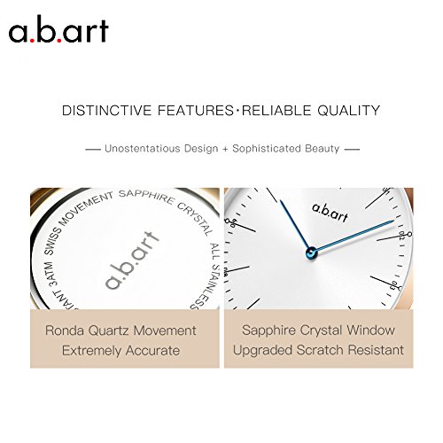 a.b.art was established in 1991 to become a well-known designer watch brand in Switzerland, we got the authorization of a.b.art from Switzerland under Madrid agreement in 2009.a.b.art sets the standard of Swiss timekeeping with the state of the art watchmaking technologies, combining its inherited Bauhaus ethos and modern fashion elements. The a.b.art represents the essence of the high quality fashionable watches with Swiss movement, crystal sapphire window and calfskin strap, the core idea of a.b.art: Fashion, simplicity, authentic and basic, popular among the young. Product Features :