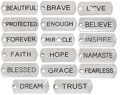 Inspirational Message Charm Pendants, Silver Tone (50 Random Pieces)