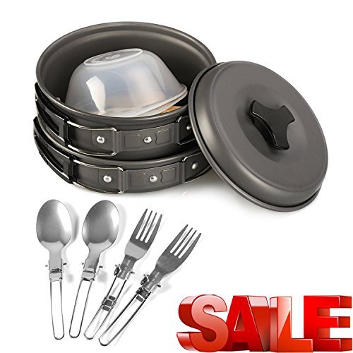 -. Title : Portable Camping Cookware Mess Kit 12 Piece Backpacking Camp Gear Outdoor Hiking Cooking Utensils Cookset Pot Pan Bowls and Folding Spork Set Bag [並行輸入品]
